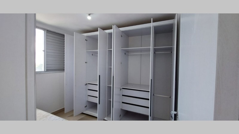 - 2° dormitório: cama Box solteiro e guarda roupas com 7 portas
